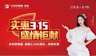 广东省重点商标--永利安陶瓷·岩板联合全国经销商推出“实惠3.15·盛情钜惠”促销活动,为消费者送上开年大礼,尊享多重优惠,为全国消费者提供高颜值、高品质、高性价比的时尚产品,以及省心、放心的购买体验,助力消费者省钱装新家!